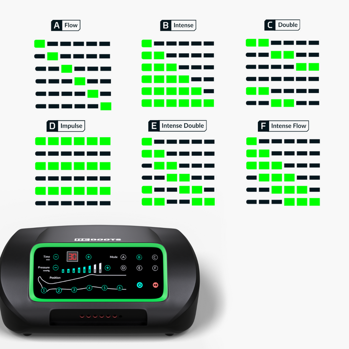 Z Reboots One lahko nadzorujete masažo od rahlega povečanja krvnega obtoka (40-80 mmHg) do globoke sprostitve mišic (do 240 mmHg). 8 stopenj intenzivnosti vam zagotavlja individualno prilagojeno regeneracijo, ki je ne boste našli nikjer drugje.